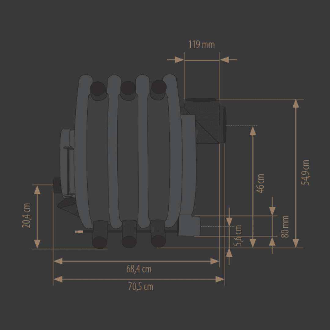 Der kleinste Vertreter aus der Kanuk® Großfamilie beeindruckt dabei mit einer stolzen Leistung von 7 kW. Dank des Konvektionsprinzips wird die warme Luft schnell in die Werkstatt oder den Wohnraum abgegeben – denn sowohl in urigen Blockhäusern, als auch in modernen, offenen Wohnräumen kommt die kleine schwarze Zwiebel richtig gut zur Geltung. Inkl. Scheibenspülung!