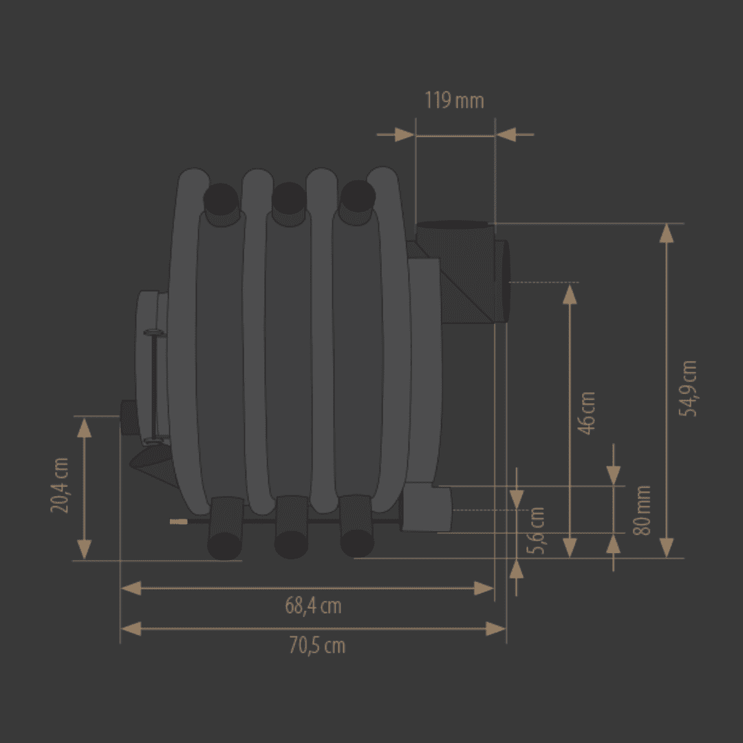 Für Wohnbereiche ebenso gut geeignet wie für Werkstätten, präsentiert sich der Kanuk® Original 9,5 kW. Das kleine Kraftpaket demonstriert auf beeindruckende Weise, das "klein" nicht gleich "wenig Leistung" bedeutet. Die schwarze Zwiebel hat stolze 9,5 kW unter der Haube und erwärmt damit Räume mit bis zu 240 m³. Bei einer Deckenhöhe von 2,5 m entspricht das einem Aufstellraum mit einer Fläche von 95 m².