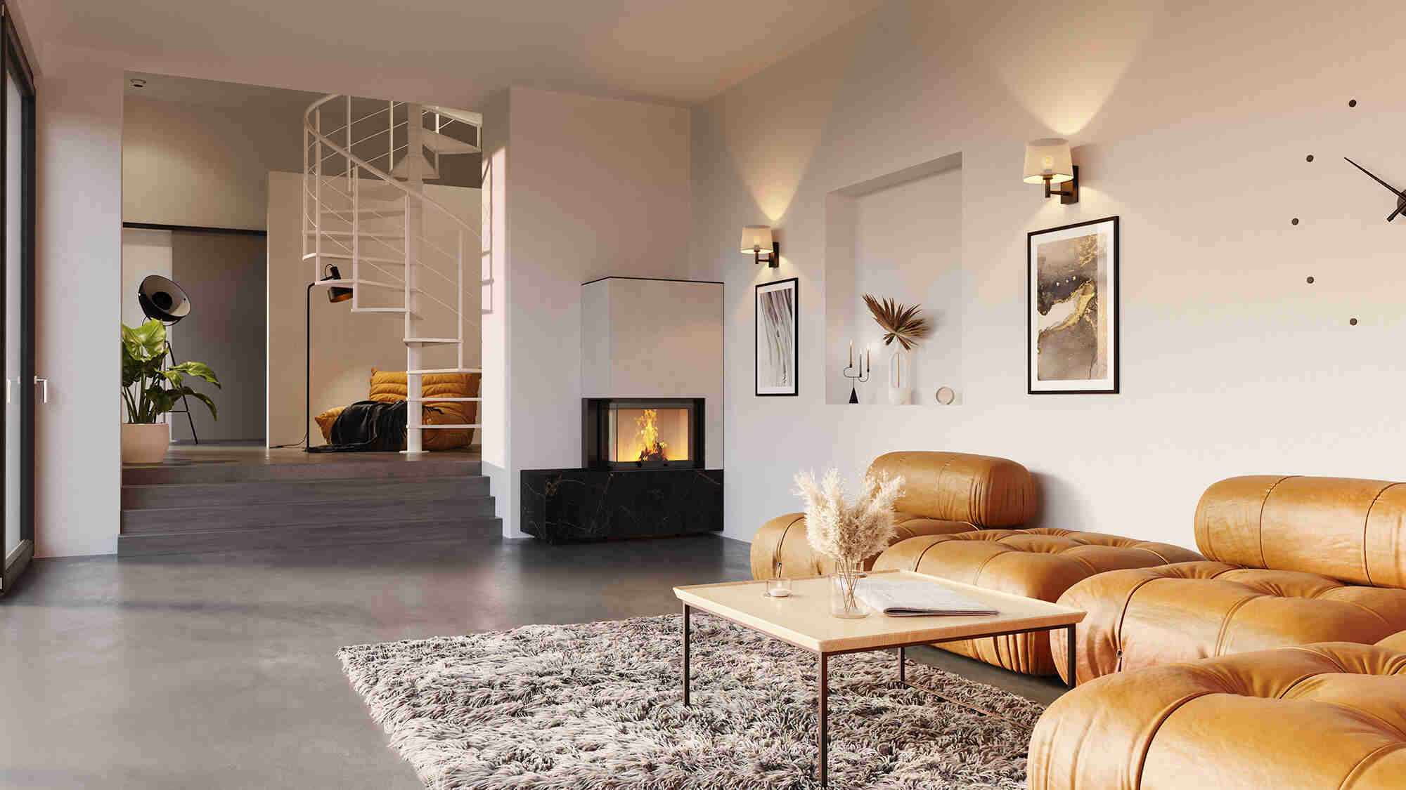 Die neocube Corner-Serie überzeugt mit ihrer hochwertigen Oberfläche aus wärmespeichernder Neolith-Sinterkeramik. Die in einem komplexen Produktionsverfahren hergestellten Platten sind natürlich, kratzfest und leicht zu reinigen. Den einzigartigen Charakter erhält die wandbündige Serie mit der geringen Tiefe durch ihre klare Formensprache sowie ihr 2-seitiges Panoramafenster.