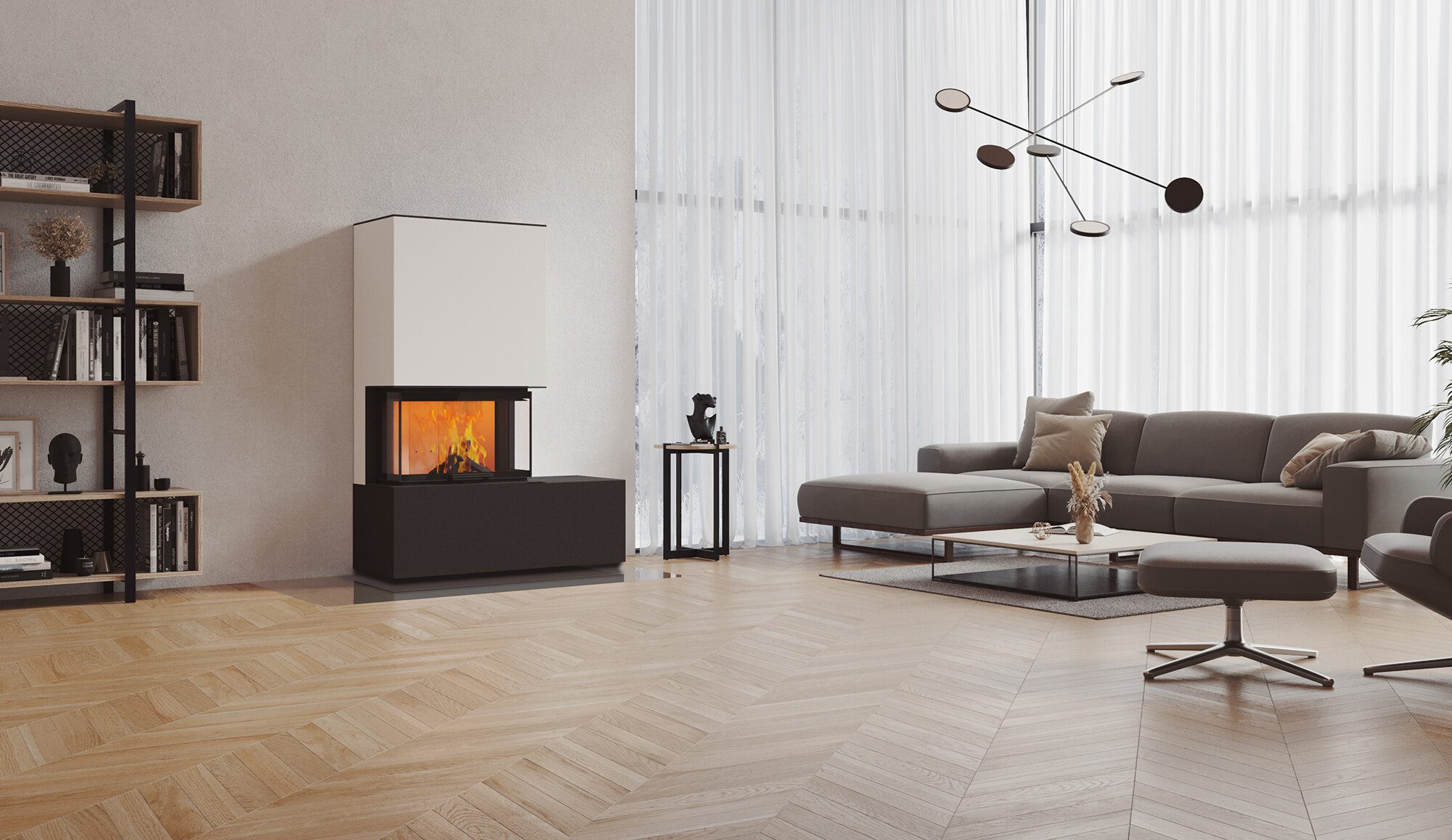Die neocube Panorama-Serie überzeugt mit ihrer hochwertigen Oberfläche aus wärmespeichernder Neolith-Sinterkeramik. Die in einem komplexen Produktionsverfahren hergestellten Platten sind natürlich, kratzfest und leicht zu reinigen. Den einzigartigen Charakter erhält die wandbündige Serie mit der geringen Tiefe durch ihre klare Formensprache sowie ihr 3-seitiges Panoramafenster.