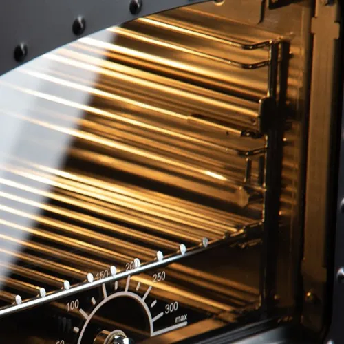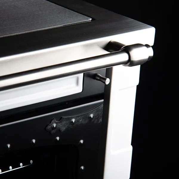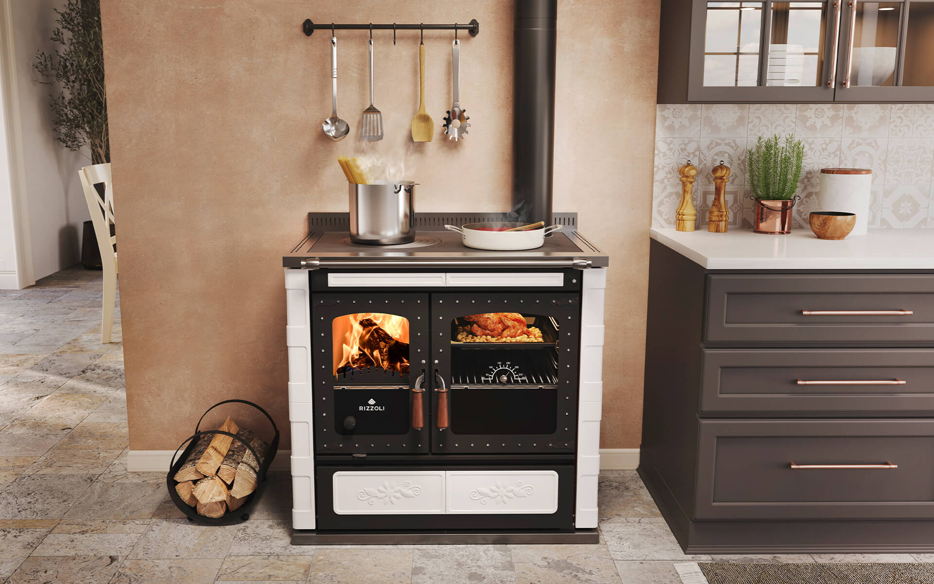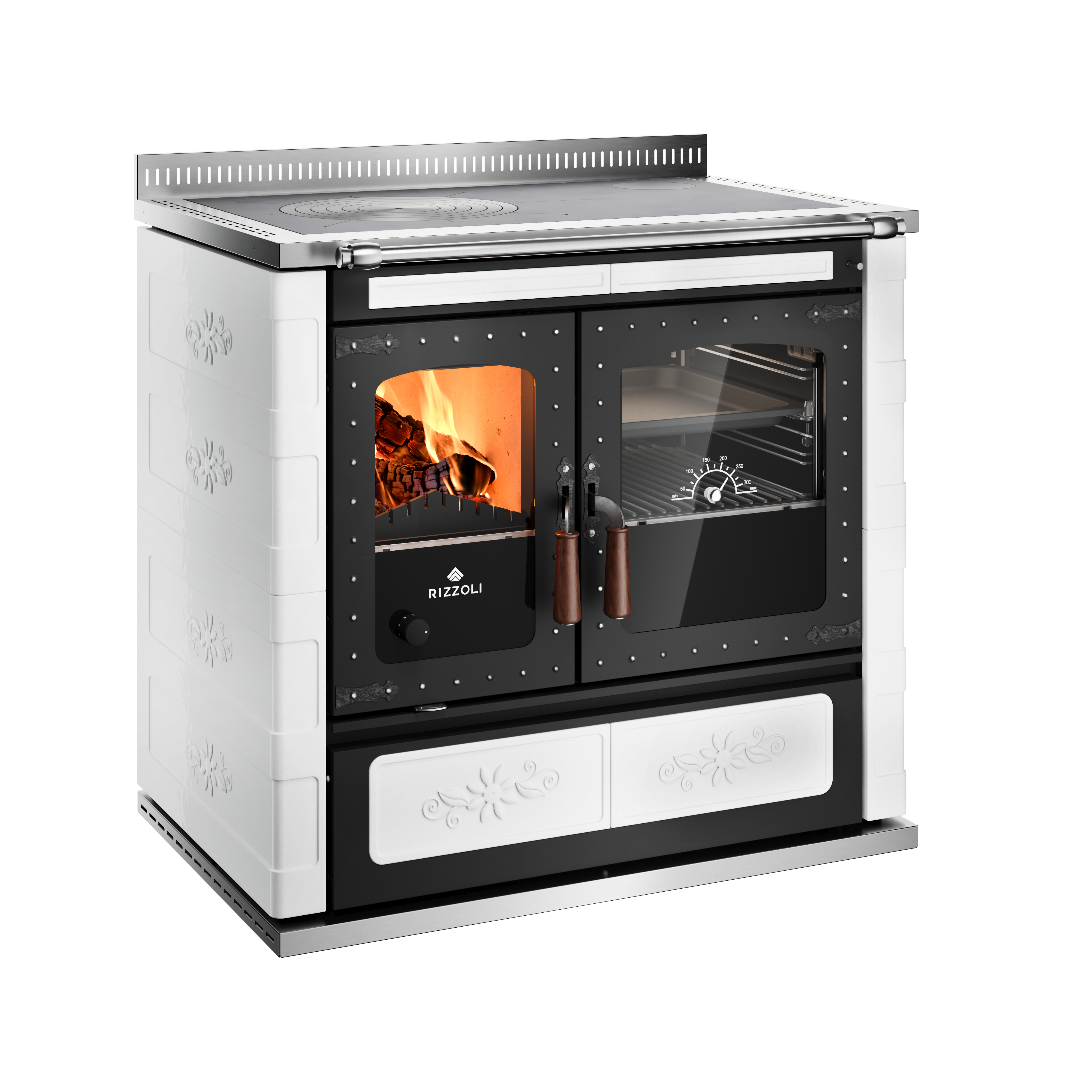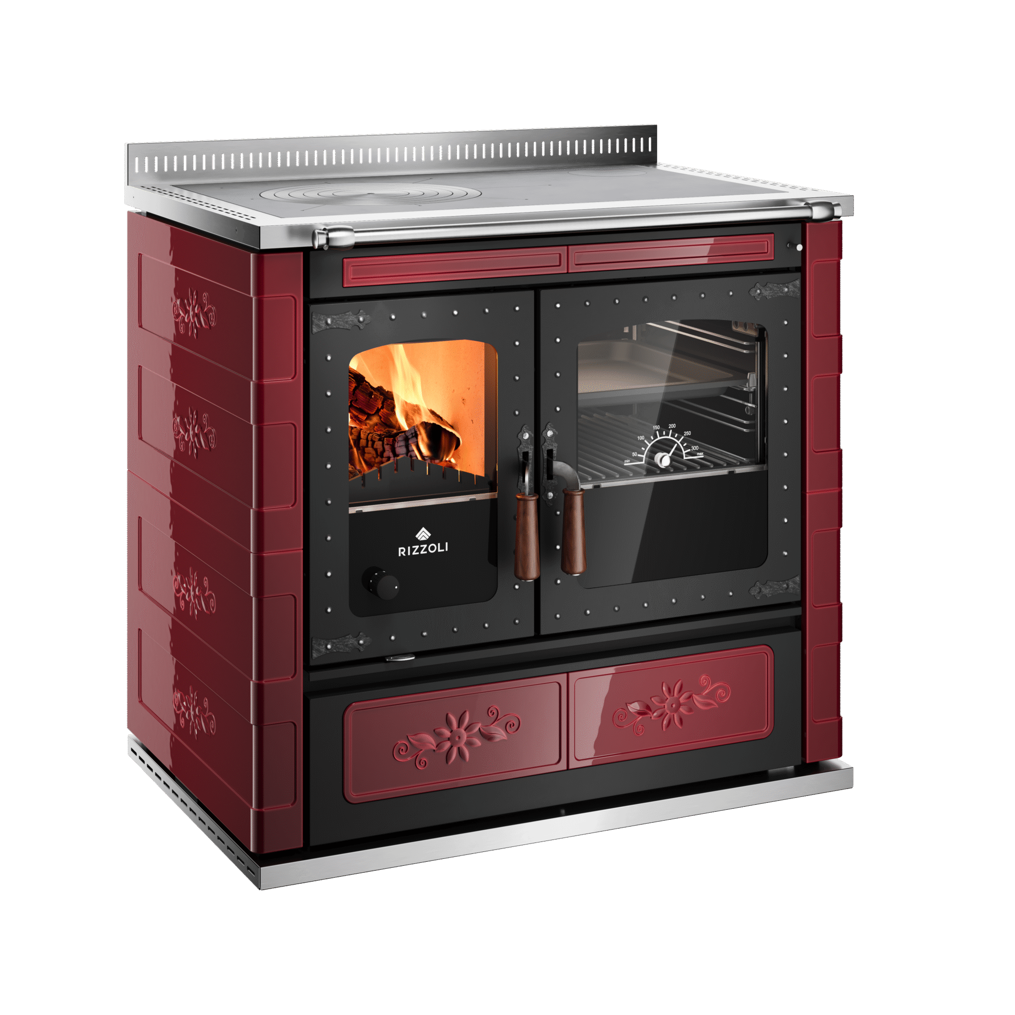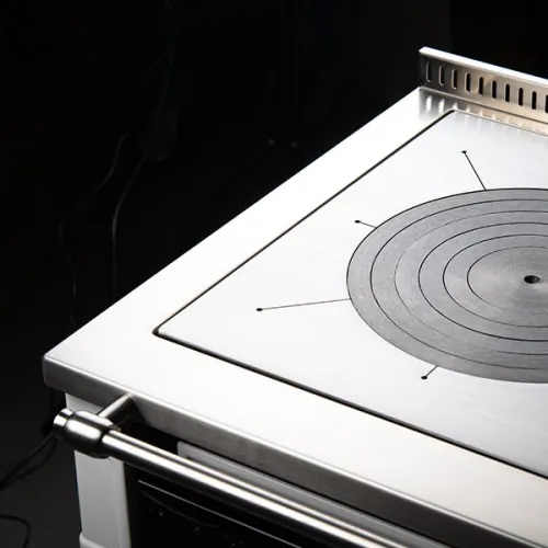 Die neuen Modelle sehen ein neues System zur Isolierung und Abkühlung des Edelstahl-Herdrahmens, neue Dichtungen aus Metalldrahtgeflecht für die Feuerraum- und Backofentür, ein neues Anheizsystem, eine Feuerraumtür mit neuem Shiny Glas®-Reinigungssystem, eine doppelt verglaste Backofentür mit integriertem Thermometer und ein Beleuchtungssystem im Backofen vor. Praktische Details: Holzlade mit gedämpftem Soft-Close-Selbsteinzug und Anpassung der Höhe anhand nivellierbaren Stellfüßen.